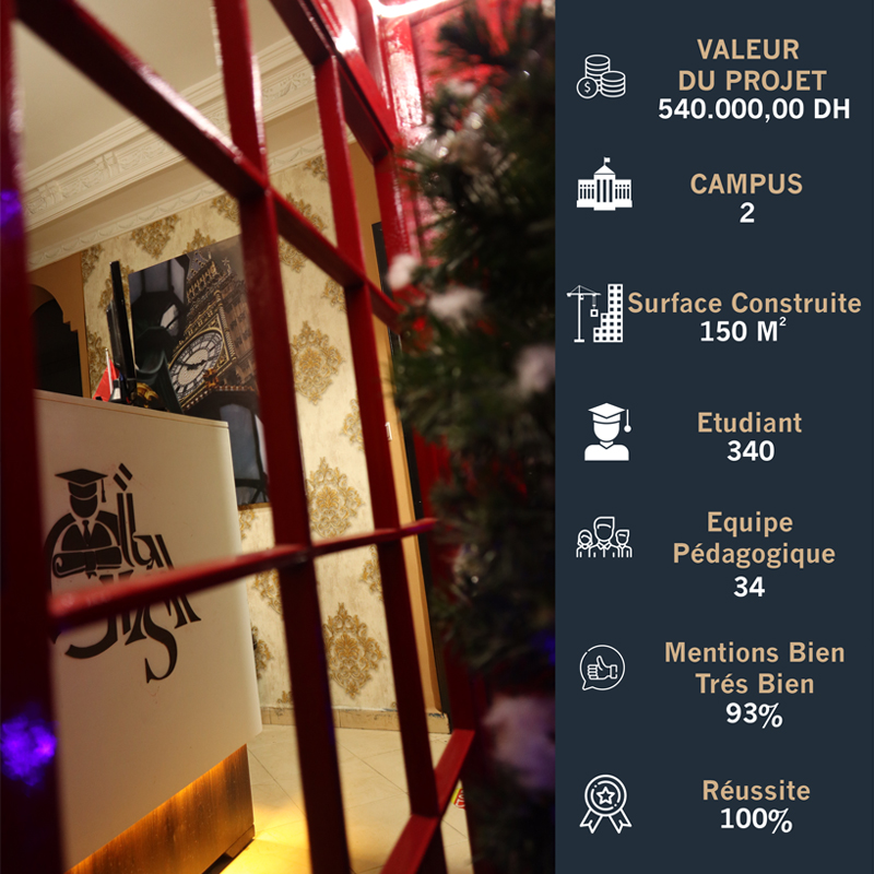 Notre ambition est d’être le principal institut de notre pays, offrant un soutien éducatif d’excellence non seulement dans la capitale Rabat mais également dans d’autres régions du Maroc. Grâce à un investissement de plus de 500 000 dirhams pour le développement de notre système éducatif et de nos centres, les instituts GROUPE INSTITUT ALAMI s’engagent à offrir un enseignement de qualité dans un environnement où chaque étudiant peut apprendre en toute sérénité.